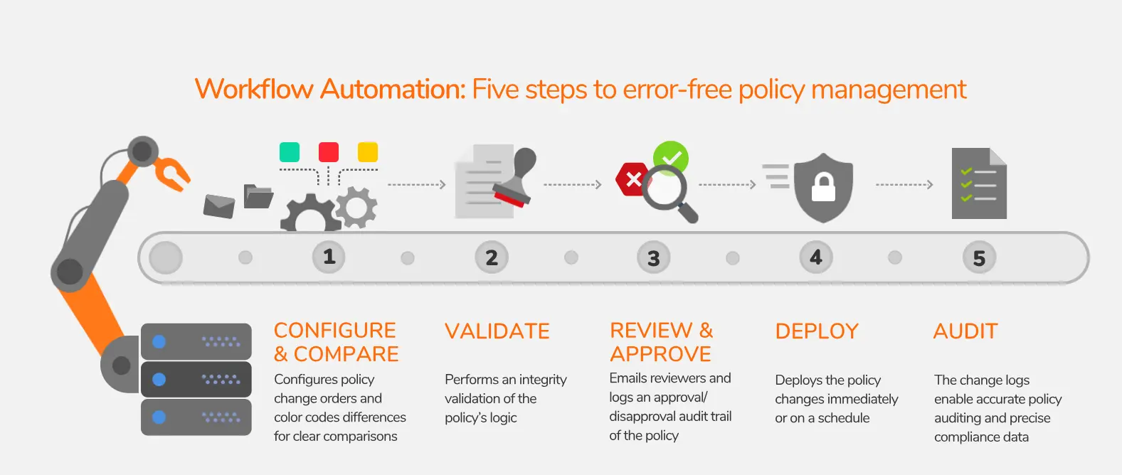 - Mitigate risks and improve efficiency with sanctioned firewall policies deployment