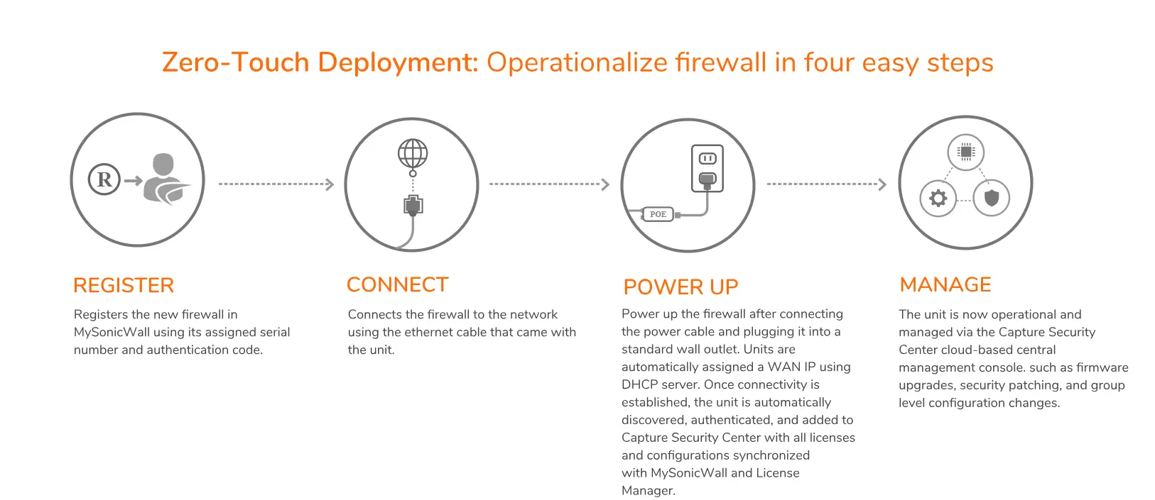 - Simplify and speed the deployment and provisioning of SonicWall firewalls remotely using the cloud